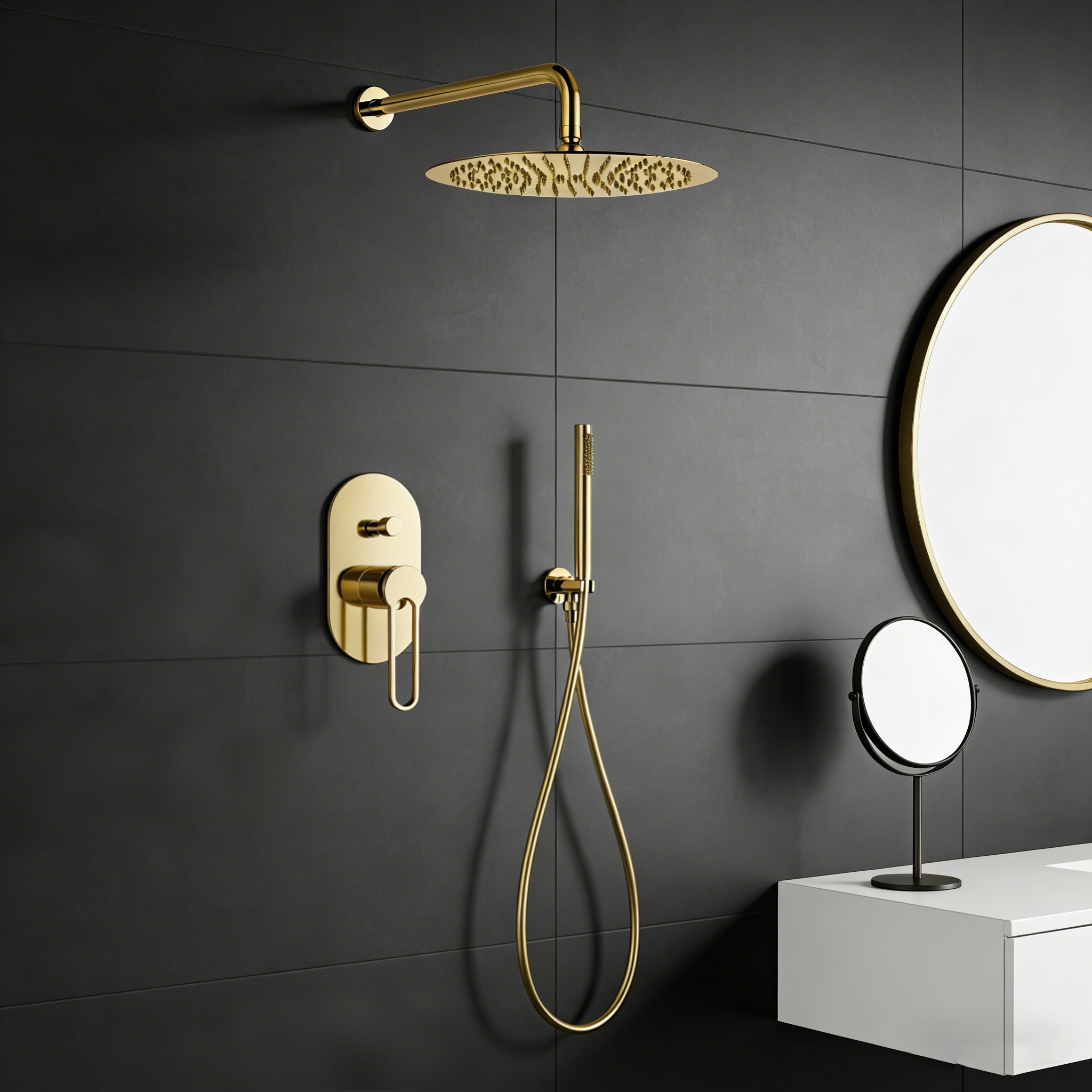 seamlessly integrate into any interior style—be it ultra-modern or timeless classic.The set includes a wall mounted shower set with a sophisticated hand shower option, allowing unparalleled flexibility and convenience for