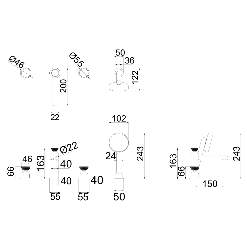 bathtub mixer set five hole mixer tapProduct Description:Four hole bathtub mixer