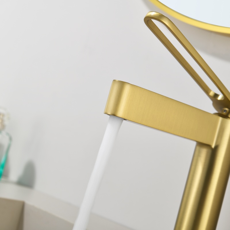 Introducing the epitome of modern elegance for your bathroom: the sleek gold-finished faucet. Crafted with precision, this faucet boasts