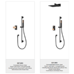 Elevate your bathroom experience with the **Modern Wall Mounted Concealed Matt Black Rose Gold Bathroom Rainfall Bath Shower Mixer Faucet Set**. This stunning shower system is designed to blend modern aesthetics with exceptional functionality, creating a spa-like retreat in the comfort of your home. Whether you’re undergoing a complete bathroom renovation or simply upgrading your fixtures, this set combines luxurious design with practical performance to become the centerpiece of your space.The **modern bathroom faucet** in this set boasts a sleek matte black finish that exudes a contemporary elegance. Its fingerprint-resistant and water spot-resistant surface ensures it maintains its pristine look day after day. Complementing the bold matte black aesthetic are subtle brushed gold accents, which bring a sophisticated warmth to the design. These accents, seen on the handle and handheld showerhead, make this **wall mounted shower mixer** the perfect choice for homeowners looking for both style and functionality.One of the standout features of this concealed shower system is the **rainfall shower head**. Engineered for optimum water flow, the oversized square head delivers a gentle cascade of water that mimics the soothing sensation of a natural rain shower. This feature transforms your ordinary daily shower into an extraordinary moment of relaxation and rejuvenation. To further enhance your bathing experience, the set includes an adjustable handheld shower with a flexible hose. Ideal for targeted rinses or cleaning hard-to-reach areas, it adds both convenience and versatility to this already impressive package.This **bathroom mixer faucet set** also offers a streamlined diverter and control panel for effortless functionality. The wall-mounted control unit makes it easy to adjust water pressure and temperature with precision. Switching between the overhead rainfall shower and handheld spray is seamless, thanks to the dual-function diverter. Such features put you in full control of your bathing experience, allowing complete customization to suit your needs.Crafted from high-quality brass and stainless steel, this shower system is built to stand the test of time. Its anti-corrosion properties ensure durability, meaning you can enjoy years of hassle-free use. Whether you’re starting your day with an energizing shower or ending it with a relaxing rinse, this set promises consistent performance and enduring luxury.Incorporating this concealed shower set into your bathroom is not just about utility; it’s about transforming your space into a statement of modern elegance. Perfect for industrial, contemporary, or luxe bathroom designs, this system enhances both the visual appeal and functionality of your space. With features like the **modern bathroom faucet**, wall-mounted shower mixer, and rainfall shower head, this set is designed for discerning homeowners who demand both innovation and artistry.Upgrade your bathroom today with the **Modern Wall Mounted Concealed Matt Black Rose Gold Bathroom Rainfall Bath Shower Mixer Faucet Set**, and enjoy a transformative bathing experience every day. This is more than just a shower system; it’s a lifestyle investment combining luxury, durability, and unparalleled design.