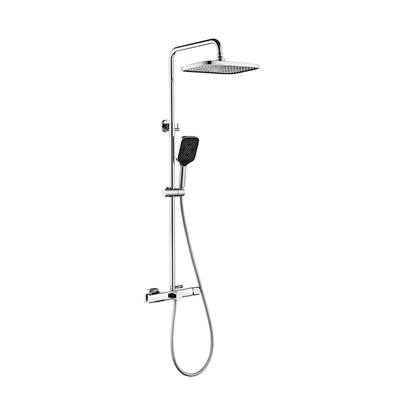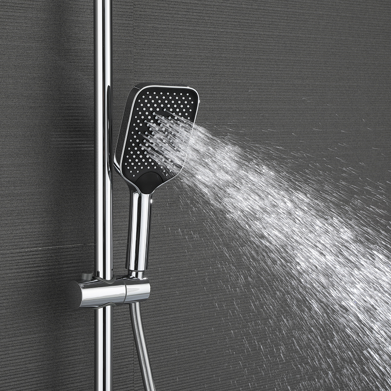 This **shower set with nice design** goes beyond functionality to serve as a lifestyle upgrade. Its elegant vertical bar, polished chrome finish, and textured gun-grey background create a visually striking setup that elevates your bathroom’s overall atmosphere. The modern, streamlined faucet unit completes the system, offering intuitive controls for water pressure and temperature adjustment. It’s not just a shower fixture; it’s the intersection of art, technology, and utility—a true masterpiece that adds value to your daily routine.Whether you’re a homeowner looking to invest in **modern shower systems** or someone eager to transform their bathroom into a stylish retreat, this three-function chrome shower system is your answer. Combining durable craftsmanship, cutting-edge features, and unparalleled aesthetics, it’s the epitome of precision engineering and modern luxury. Experience every shower as a curated event and take your personal space to new heights with this innovative shower system that promises style, comfort, and lasting quality.