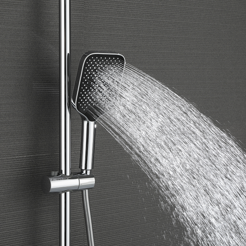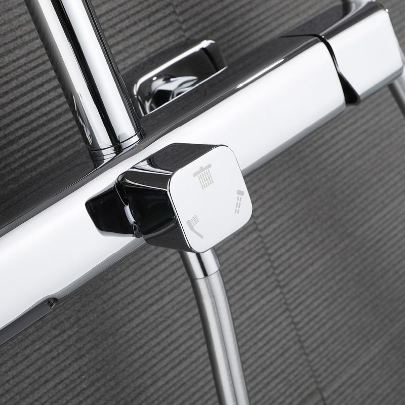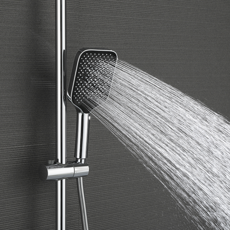 Designed to enhance your bathroom’s aesthetics, the shower set features a mirror-polished chrome surface that radiates sophistication. Its minimalist design beautifully complements contemporary bathroom decor, while the gun-grey accents add a touch of opulence. Not just stunning, the chrome finish is exceptionally durable, resisting corrosion and wear and ensuring longevity with minimal maintenance. This **chrome shower set** effortlessly integrates form and function, combining beautiful design with durability for everyday use.The three functions of this shower system—rainfall, handheld, and dual-shower modes—offer a customizable bathing experience tailored to your needs. Whether you desire the soothing cascade of a rainfall shower or the practicality of a handheld mode, every option delivers a spa-like experience right in your home. The ergonomic control dial ensures smooth transitions between modes, with elegantly laser-etched icons guaranteeing intuitive operation for users of all ages. These simple yet effective features make this **modern shower set** the perfect blend of luxury and user convenience.