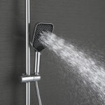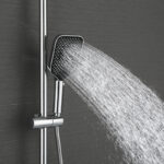 Beyond its stunning exterior, this shower system demonstrates exceptional performance and efficiency. The advanced water temperature regulation technology allows you to maintain consistent water flow and precise temperature settings, ensuring a relaxing and comfortable shower experience every time. Engineered with sustainability in mind, the system reduces water wastage without compromising on the richness of the shower itself. For a bathroom upgrade that merges environmental consideration with indulgence, this is an ideal choice.The **high-quality shower head** is the centerpiece of this system, delivering unmatched performance. The rain shower head, crafted with premium chrome, offers a continuous cascade of perfect droplets that mimic natural rainfall, enveloping you in relaxation. Complementing this is the handheld shower wand, designed with a contoured ergonomic grip for comfortable handling. Multiple spray settings allow for personalization of your shower experience, making it ideal for relaxation or targeted cleaning. Both components are adjustable, providing accessibility and convenience for every household member.
