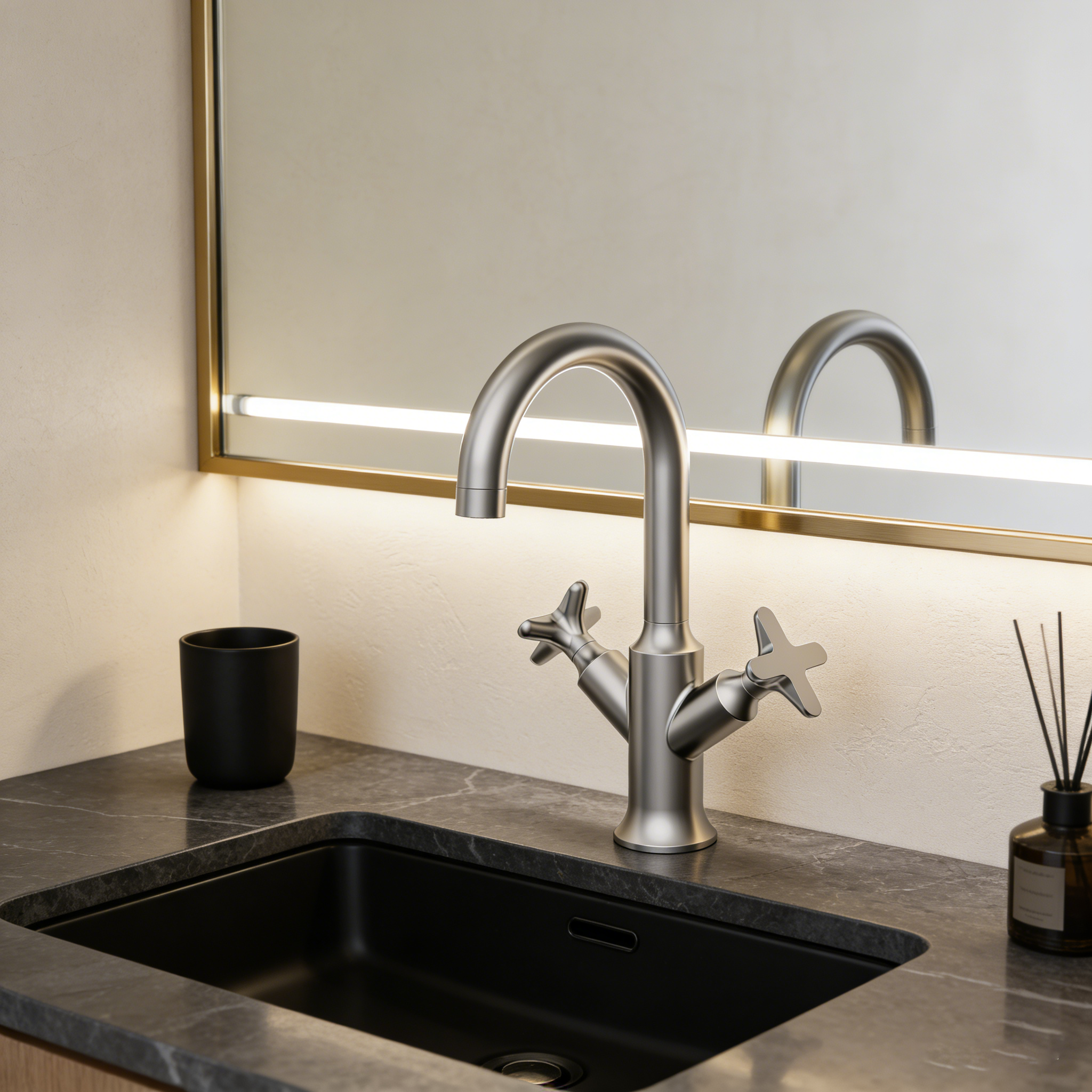 Crafted from high-quality brass, the brass two handle tap offers exceptional durability and resistance to corrosion, promising years of reliable use without compromising on aesthetics. Its one-hole installation simplifies setup, fitting seamlessly into most bathroom sinks and basins. The waterfall mixer feature creates a cascading flow that not only looks mesmerizing but also minimizes splashing, providing a spa-like sensation every time you turn it on. Paired with its polished finish, this bathroom sink faucet enhances any decor, from contemporary to classic, making it ideal for face wash stations or full vanity setups. The related modern brass faucet elements, such as ergonomic handles and a sleek spout, ensure smooth operation and easy maintenance, keeping your space spotless and sophisticated.